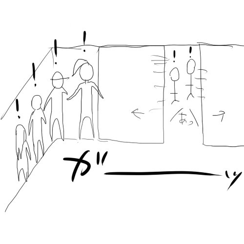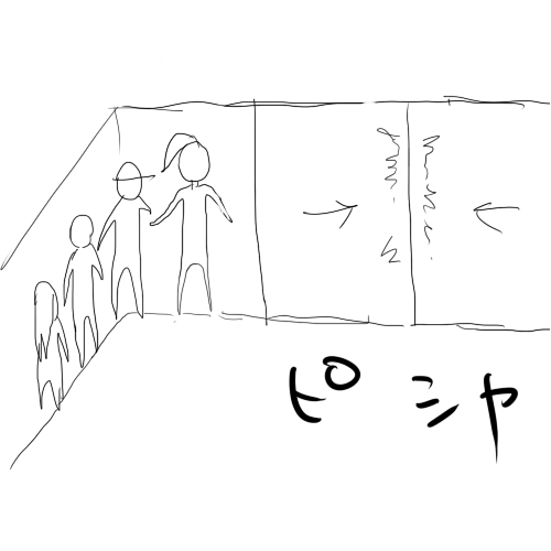自動ドアが開いたらまだ外にお客さんが