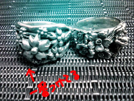 左のリングです。比較のために隣にもう1個。ちなみにこれは桜と龍。