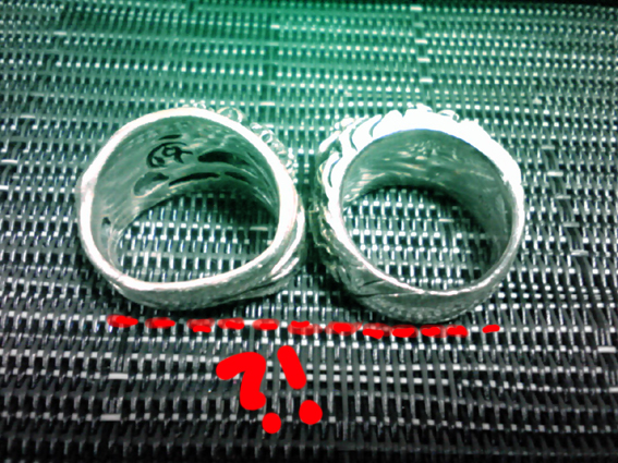 左のリングです。比較のために隣にもう1個。ちなみにこれは桜と龍。